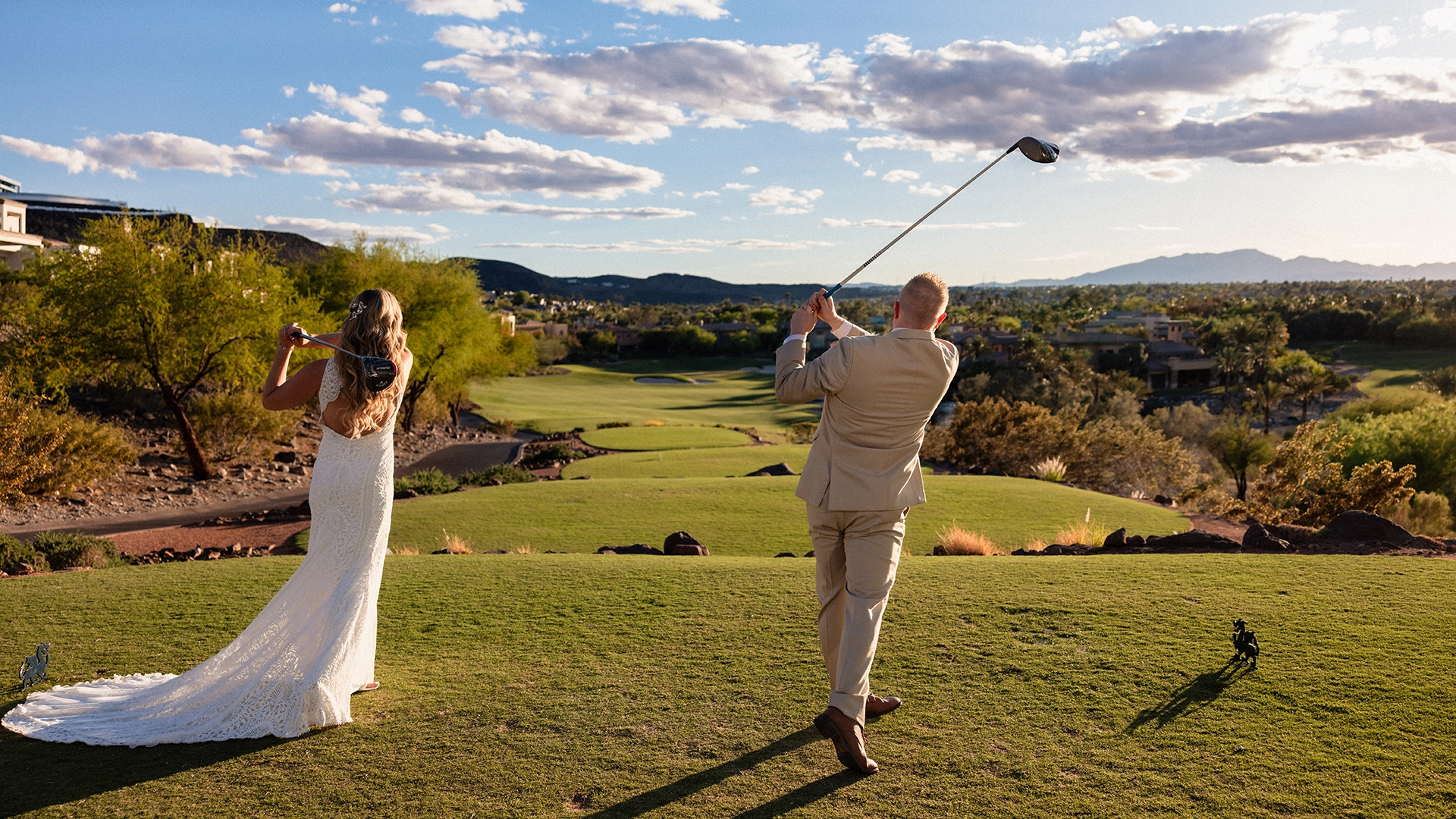 Nestled amid the captivating vistas of Las Vegas, DragonRidge Country Club offers an enchanting setting for your ideal ceremony and reception. Against the backdrop of the iconic Las Vegas Strip, the venue boasts a stunning golf course featuring lush fairways, a serene lake, cascading waterfall, and palm trees, providing the perfect canvas for realizing your dream wedding.